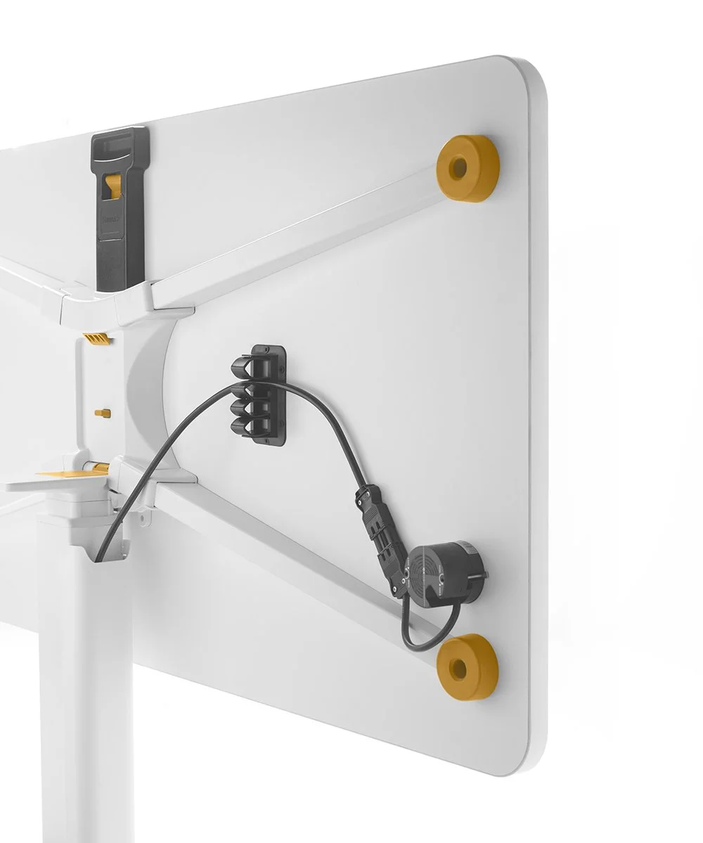 These tables feature a height-adjustable system and a foldable tabletop, offering numerous possibilities for use. They allow for working and meeting in different positions, can be easily stored to create more space, and even provide a writable surface that transforms into a whiteboard for sketches during creative sessions.