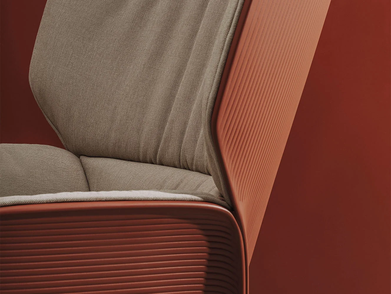 Coleção Bolete – Cadeiras e poltronas modulares que permitem múltiplas composições, pensados para ambientes flexíveis e para uma lógica de circularidade e adaptação contínua.