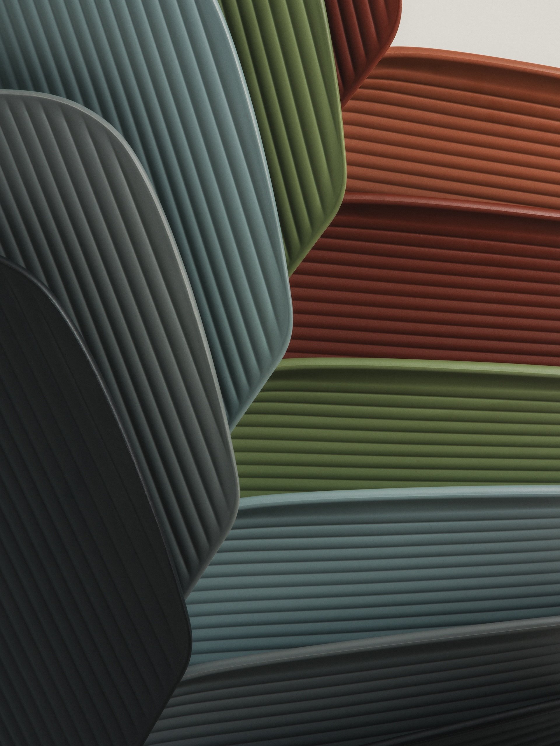 Em ambas as propostas, Patricia Urquiola recorre ao termopolímero BIO®, um material de origem biológica desenvolvido segundo elevados padrões de sustentabilidade e design. Certificado com o selo OK BIOBASED 4 estrelas da TÜV Austria, representa o mais alto nível de conteúdo de base biológica.